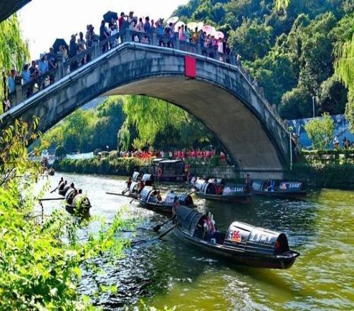 9月28日,大量乌篷船沿浙东古运河穿越古韵揽月桥。本文图片均为 绍兴日报 袁云 章斌9月28日,“千年运河 乌篷竞...