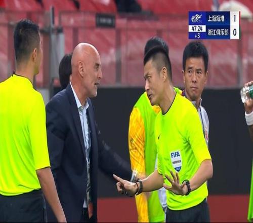 比分领先的上海海港继续保持高位的逼抢,主打刘若钒所在的右边路,效果非常好。反观浙江队,即便是拿到球权,反击的成功率很低,经常刚到半场就被对手断掉。半场比赛结束,浙江队暂时一球落后。
