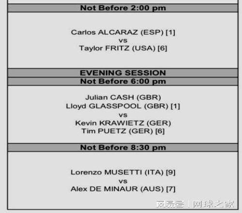 北京时间今晚,ATP年终总决赛将继续进行。单打赛场,美国二哥弗里茨将在21点左右出战,对阵头号种子阿尔卡拉斯。另一场对决将在明天凌晨3点半左右进行,由穆塞蒂vs德米纳尔。