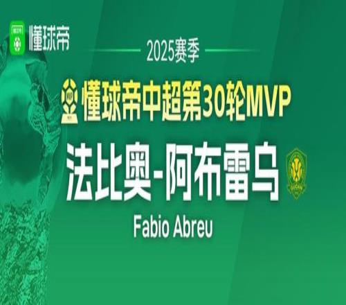懂球帝2025赛季中超第30轮MVP:法比奥阿布雷乌