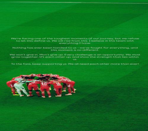 范戴克在社交媒体写道:“我们正经历旅程中最艰难的时刻之一,但我们拒绝让这一刻定义我们。