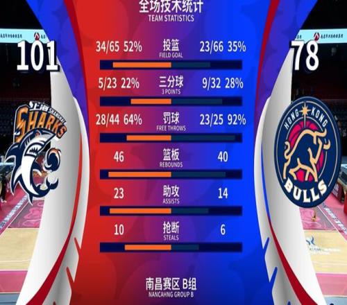 最终,上海男篮101-78战胜香港金牛,收获了俱乐部杯的三连胜,晋级八强,同时获得了CBA俱乐部杯决赛圈的门票。在数据方面,上海男篮5人得分上双,洛夫顿19分5板4助,弗格19分3板3助,王哲林18分7板1助,李弘权12分5板,古德温10分6板6助,李添荣8分2板6助。值得注意的是,本场比赛上海男篮的罚球命中率并不高,44投28中,命中率仅有64%。