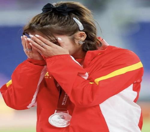 颁奖时,她低头看了眼银牌,没忍住掉了眼泪。