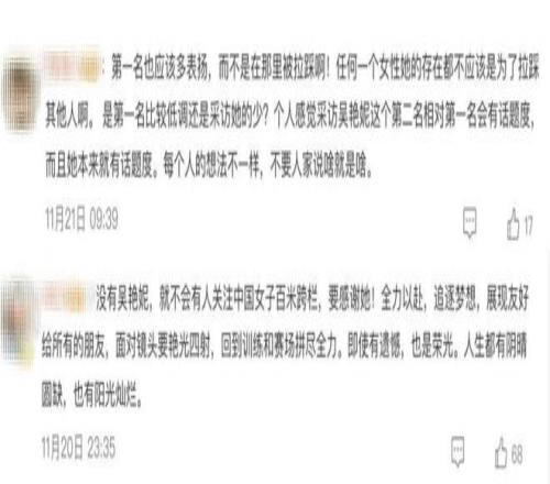 甚至在网上,很多人说,如果没有吴艳妮,可能没有那么多人关注女子100米栏这个项目。